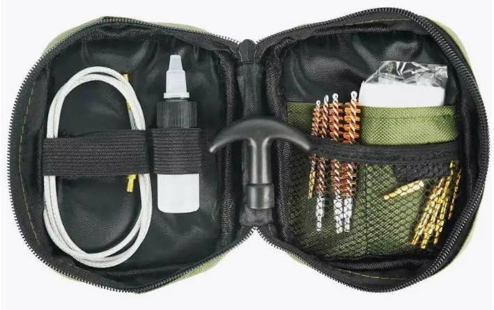 Набор для чистки GK29 (для нарезных калибров). Универсальный набор используется для качественного ухода за оружием нарезного калибра. Подходит к следующим калибрам: .223 Rem (5.56x45мм), .22 LR (5.6мм), 4.5, 5.45, 7.62, 7,62x39, 7,62x54R. В наборе имеется рукоятка протяжки, шнур протяжки, четыре ершика, две иглы-вишера, два вишера-петли, упаковка патчей размером 3.8х7.6 см и масленка. Производство Китай.