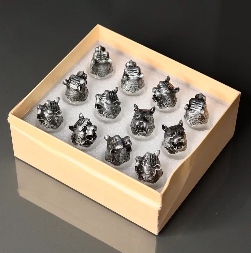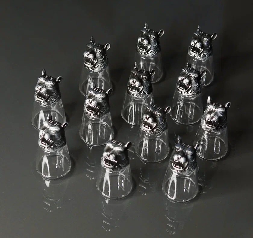 Подарочный набор для людей, которые любят оригинальные подарки. 12 сувенирных рюмок, основание которых выполнено в виде головы тигра. Комплект при покупке: подарочная коробка, 12 рюмок, упакованные в мягкий поролон.