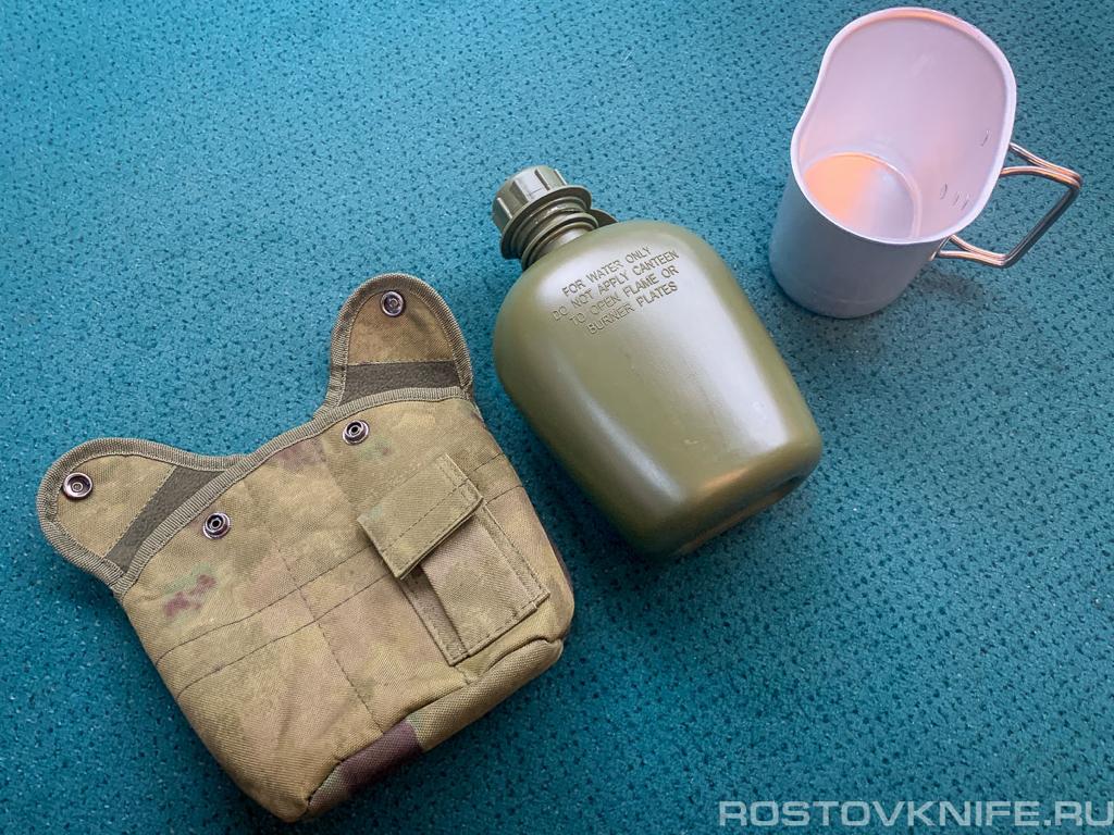 Фляжка натовская 1л с кружкой-котелком в чехле мультикам/мох