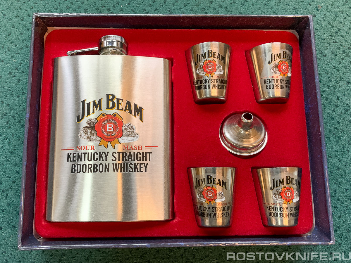 005-38, Набор - фляжка металл принт/4 рюмки/лейка