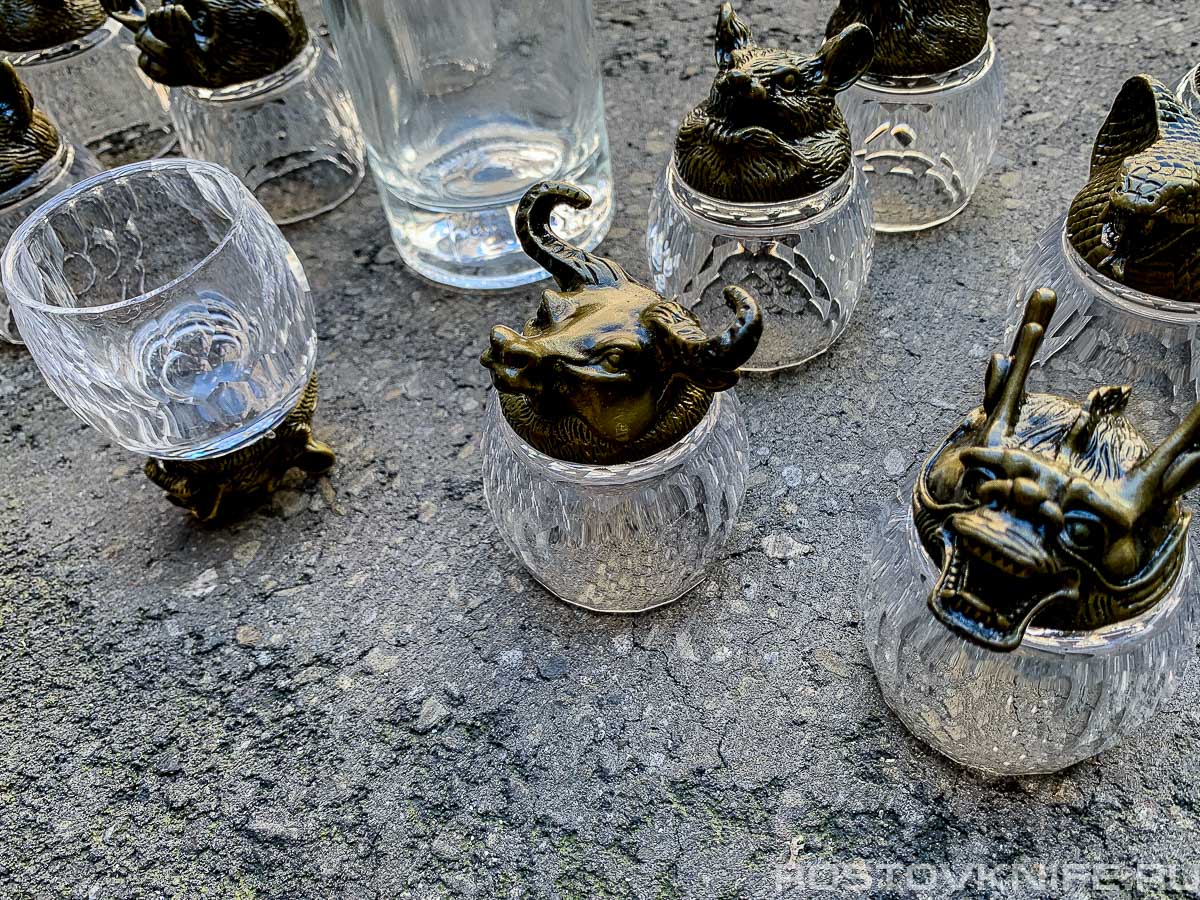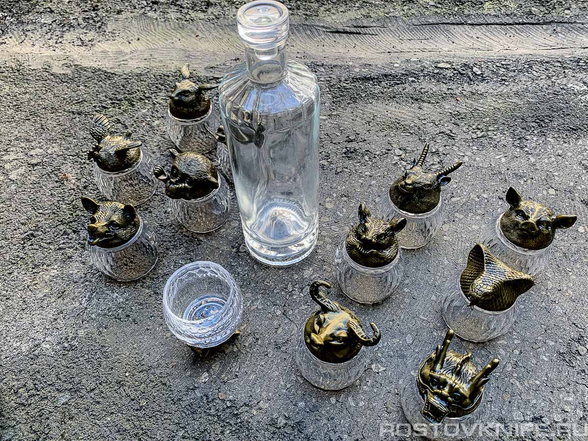 Подарочный набор стаканчиков перевертышей - это необычный и оригинальный способ подачи алкогольных напитков. Комплект подойдет как подарок мужчине, на день рождение или просто ради приятного сюрприза. Восточный зодиак представлен двенадцатью знаками зодиака, каждый из которых принадлежит определенному животному. Именно поэтому 12 сувенирных стаканчиков и бутылка, входящие в подарочный набор, выполнены под 12 зодиакальных животных. Набор не только красивый, но и функциональный, и станет прекрасным дополнением к любому дружескому вечеру, и каждый из ваших друзей может выбрать свой любимый напиток. Если вы ищете необычный и оригинальный подарок для мужа, парня, папы, то данный комплект - это отличный выбор. Кроме того, стеклянные прозрачные стаканчики легко моются и не подвергаются коррозии.