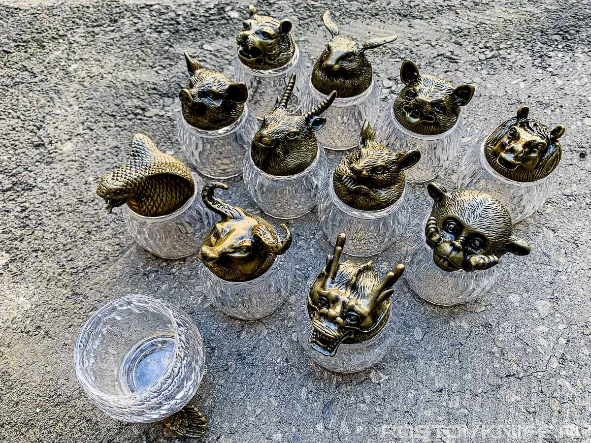 Подарочный набор стаканчиков перевертышей - это необычный и оригинальный способ подачи алкогольных напитков. Комплект подойдет как подарок мужчине, на день рождение или просто ради приятного сюрприза. Восточный зодиак представлен двенадцатью знаками зодиака, каждый из которых принадлежит определенному животному. Именно поэтому 12 сувенирных стаканчиков, входящие в подарочный набор, выполнены под 12 зодиакальных животных. Набор не только красивый, но и функциональный, и станет прекрасным дополнением к любому дружескому вечеру, и каждый из ваших друзей может выбрать свой любимый напиток. Если вы ищете необычный и оригинальный подарок для мужа, парня, папы, то данный комплект - это отличный выбор. Кроме того, стеклянные прозрачные стаканчики легко моются и не подвергаются коррозии.