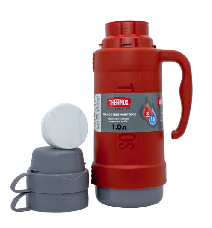 Термос для напитков THERMOS PICNIC 40-100 Red, стеклянная колба