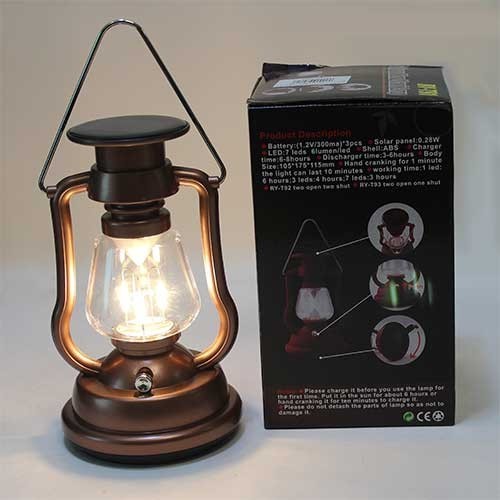 HYD-T93 bronze - Лампа кемпинговая светодиодная, 3х1.2В/300мА, type C, солнечная панель, динамо
