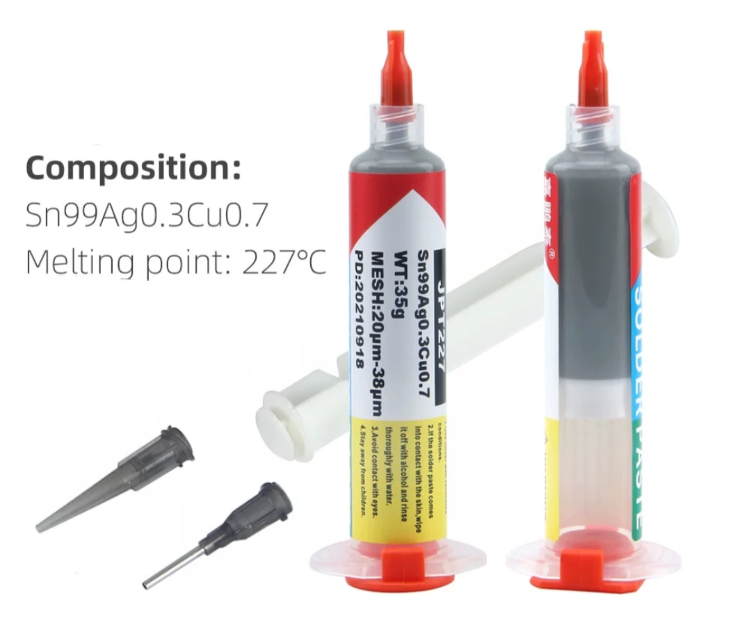 JPT227 - паста BGA Sn99Ag0.3Cu0.7 227°C, шприц 20г+2 иглы, JPT