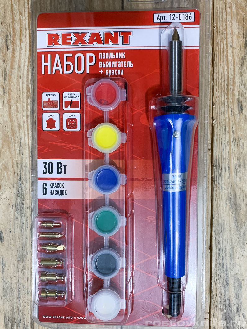 12-0186 - Выжигатель-паяльник 220В/30Вт (6 насадок) + КРАСКИ, Rexant