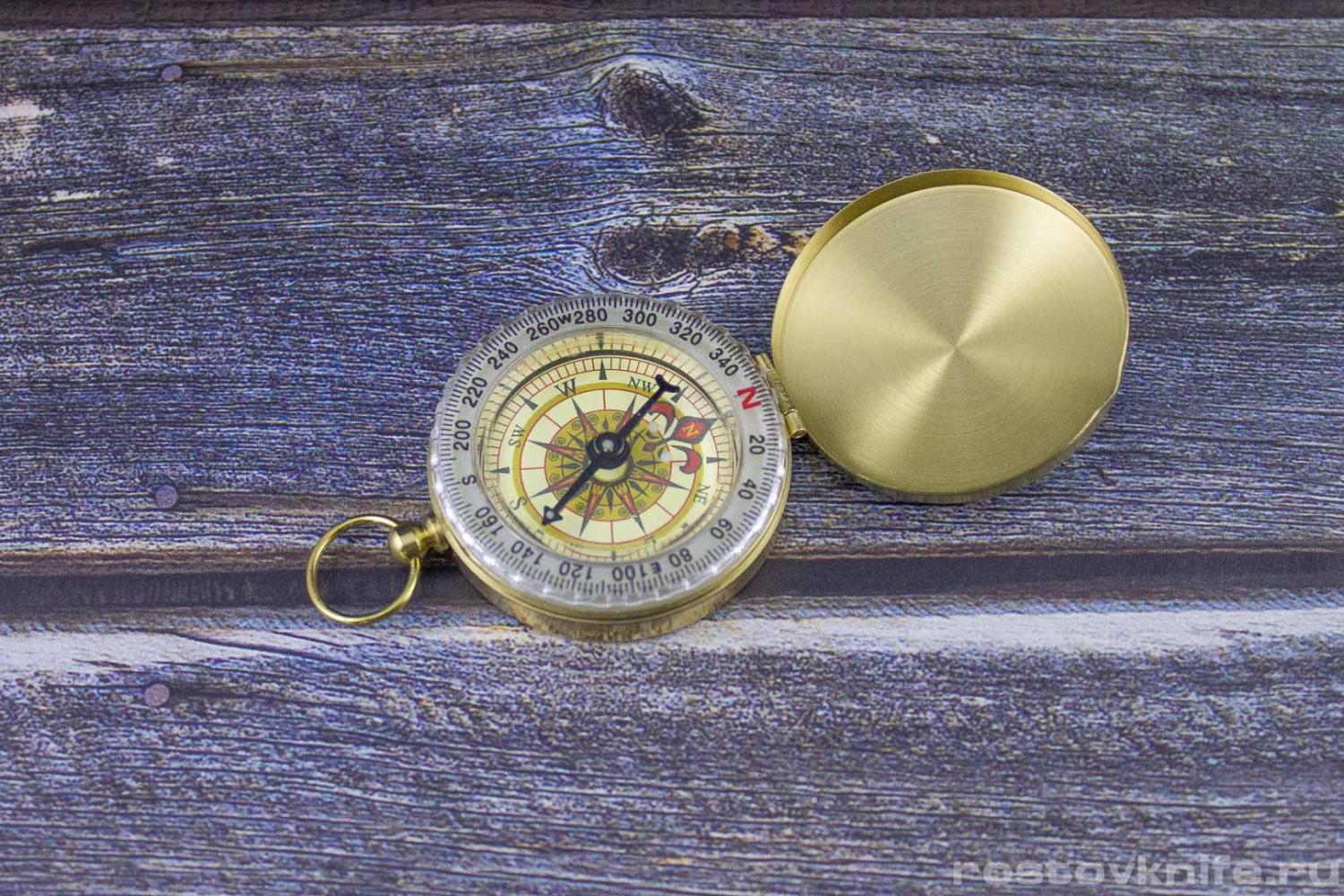 G50, компас с крышкой под старину d=50мм, металл "золото "