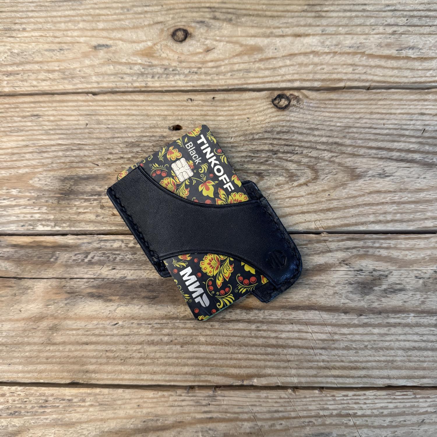 Стильное кожаный кардхолдер ручной работы, выполненный из гладкой натуральной кожи глубокого тёмного оттенка. Лаконичный и брутальный дизайн подчёркивается аккуратной прошивкой по краям.