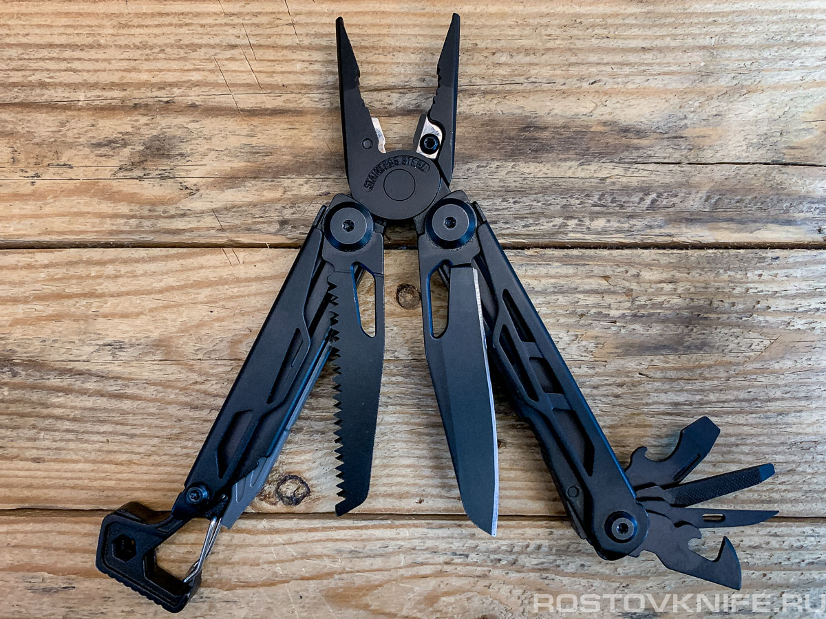 Функции, особенности: клипса, предохранительный замок, 4шт двусторонние отвертки, карабин, головка для бит, свисток, огниво, пила, нож, средняя шлицевая отвертка и консервный нож, шило, двусторонний натфиль, большая шлицевая отвертка и открывалка для бутылок, кусачки, кусачки для твердой проволоки, обычные плоскогубцы, плоскогубцы с острыми губками, чехол.
