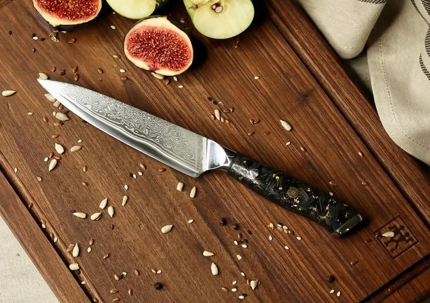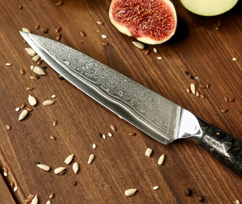 D-173 - Нож универсальный карбон пин 125мм, 10Cr15MoV/ Damascus laminated
