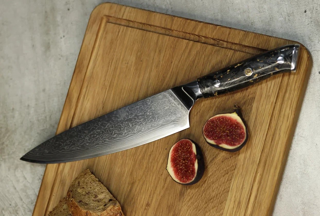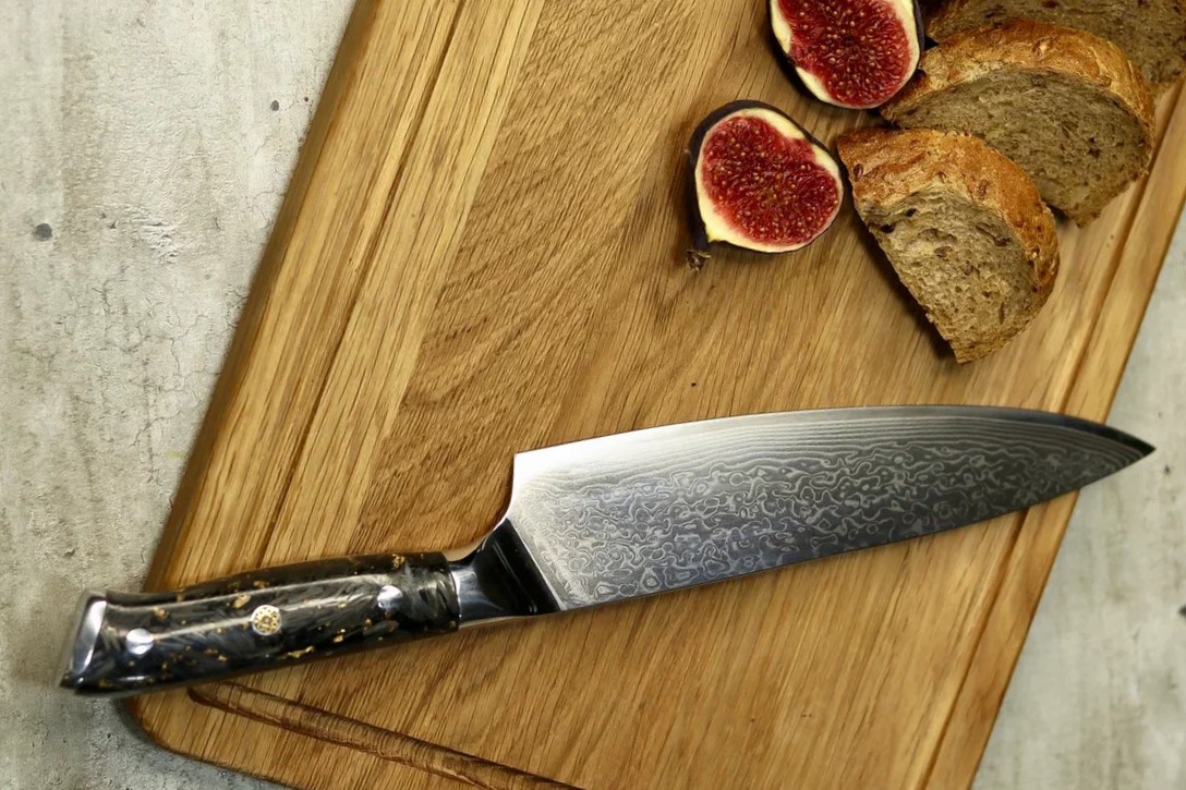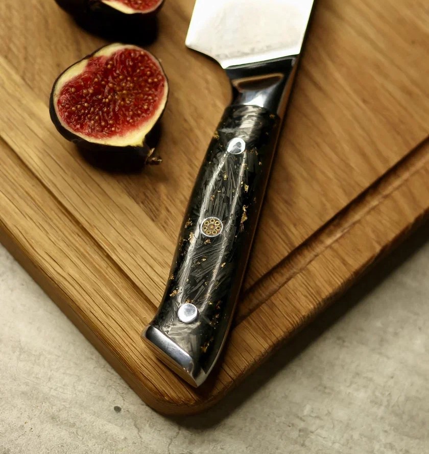 D-168 - Нож шеф карбон пин 210мм, 10Cr15MoV/ Damascus laminated