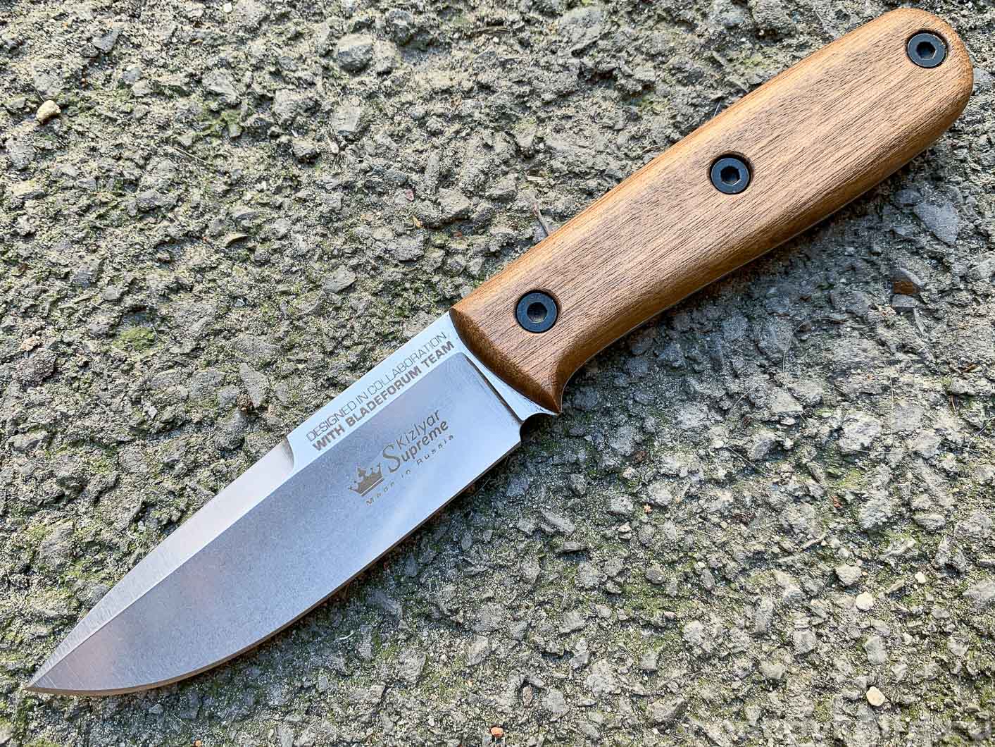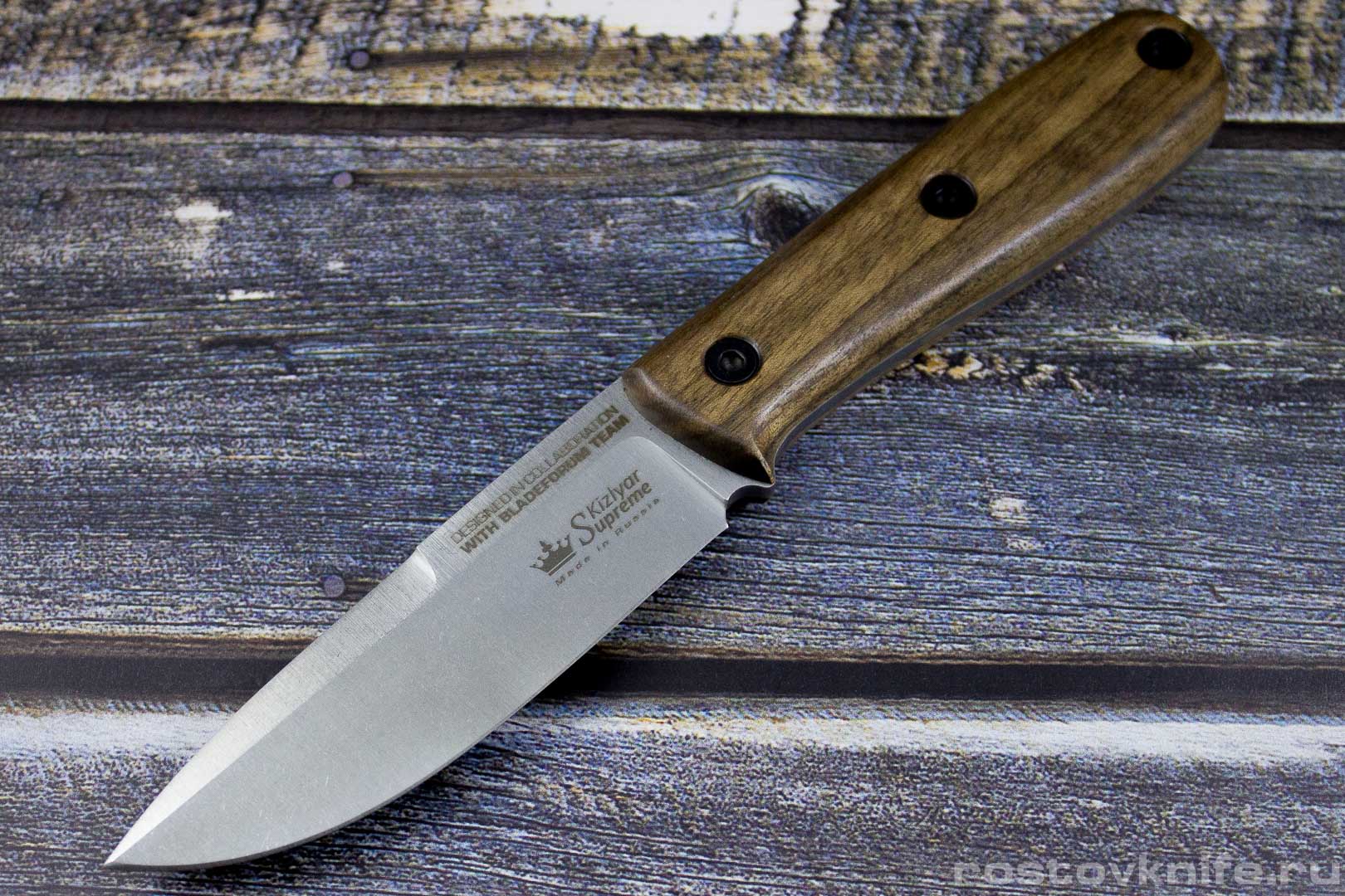 Colada AUS-8 S+SW (Сатин+SW, Дерев рукоять, Кожаный чехол), Kizlyar Supreme