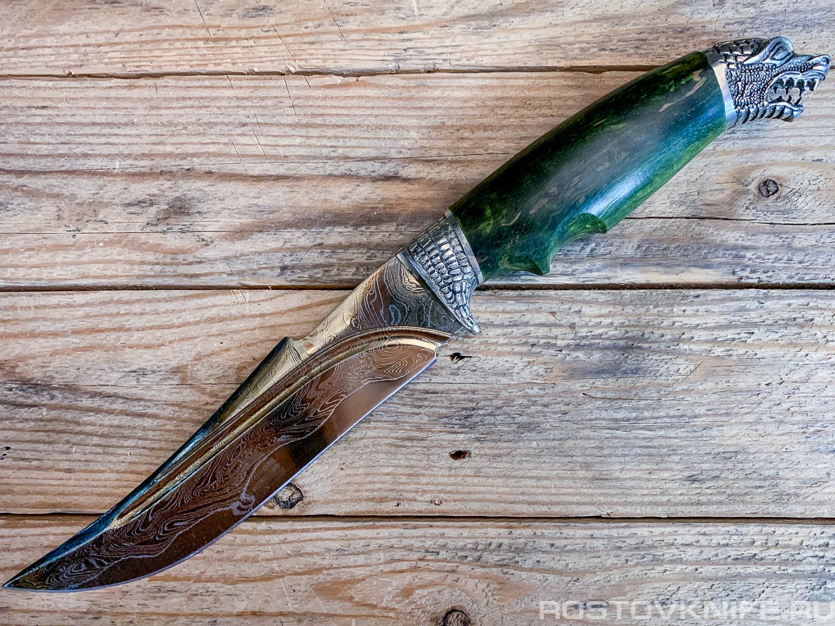 ООО ПОИСК - Дракон ШХ15 в обкладке из дамаска, анодирование, стаб. К/Б, мельхиор