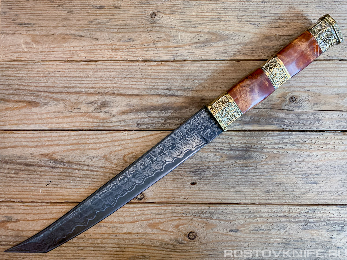 ООО ПОИСК - Танто ник. Дамаск, стаб. Девесина, латунь