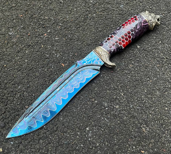 Материал клинка: дамасская сталь с добавлением никеля, анодирование