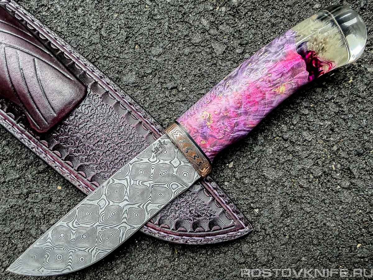 Уральская ножевая компания - Лесник одуванчик/кап клёна/акрил/мокуме, дамаск "Пирамида"