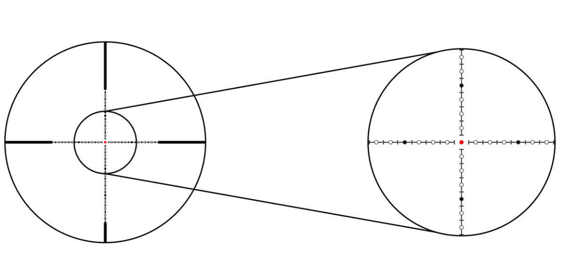 Поле зрения: 4° (при 6x) и 1° (при 24x)