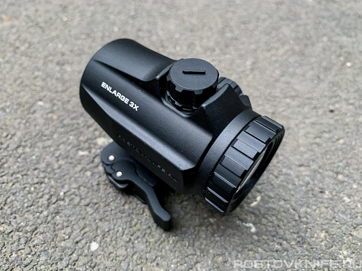 Enlarge 3X добавляет универсальности любому коллиматорному прицелу. Премиальные линзы обеспечивают четкое изображение с оптимальным удалением выходного зрачка, так же пользователь сможет легко поражать цели на большем расстоянии, чем раньше. Увеличитель совместим с любым прицелом высоты Lower 1/3 Co-Witness, устанавливается на любую планку типа Пикатинни и благодаря наклонной функции фиксируется в стороне или возвращается на место. Герметичные уплотнения предотвращают попадение пыли и грязи. Заполнение Азотом предотвращают внутреннее запотевание при шоковом диапазоне температур.