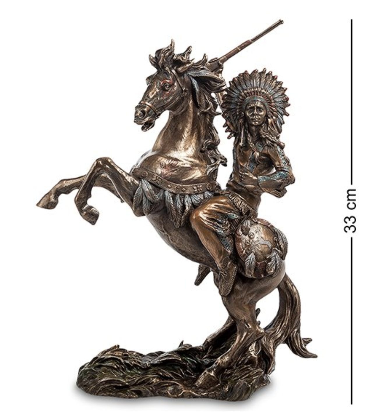 Статуэтка сделана из полистоуна, а стало быть, даже в случае падения с приличной высоты на пол сохранит себя в первозданном виде. Ее можно приобрести в подарок боевому офицеру или ребенку, мечтающему о военных победах. «Индеец на коне» без труда найдет взаимопонимание с амбициозными предпринимателями, сражающимися за доли рынка и процветание собственного бизнеса. Фигурка понравится многим, так как выполнена качественно и со вкусом.