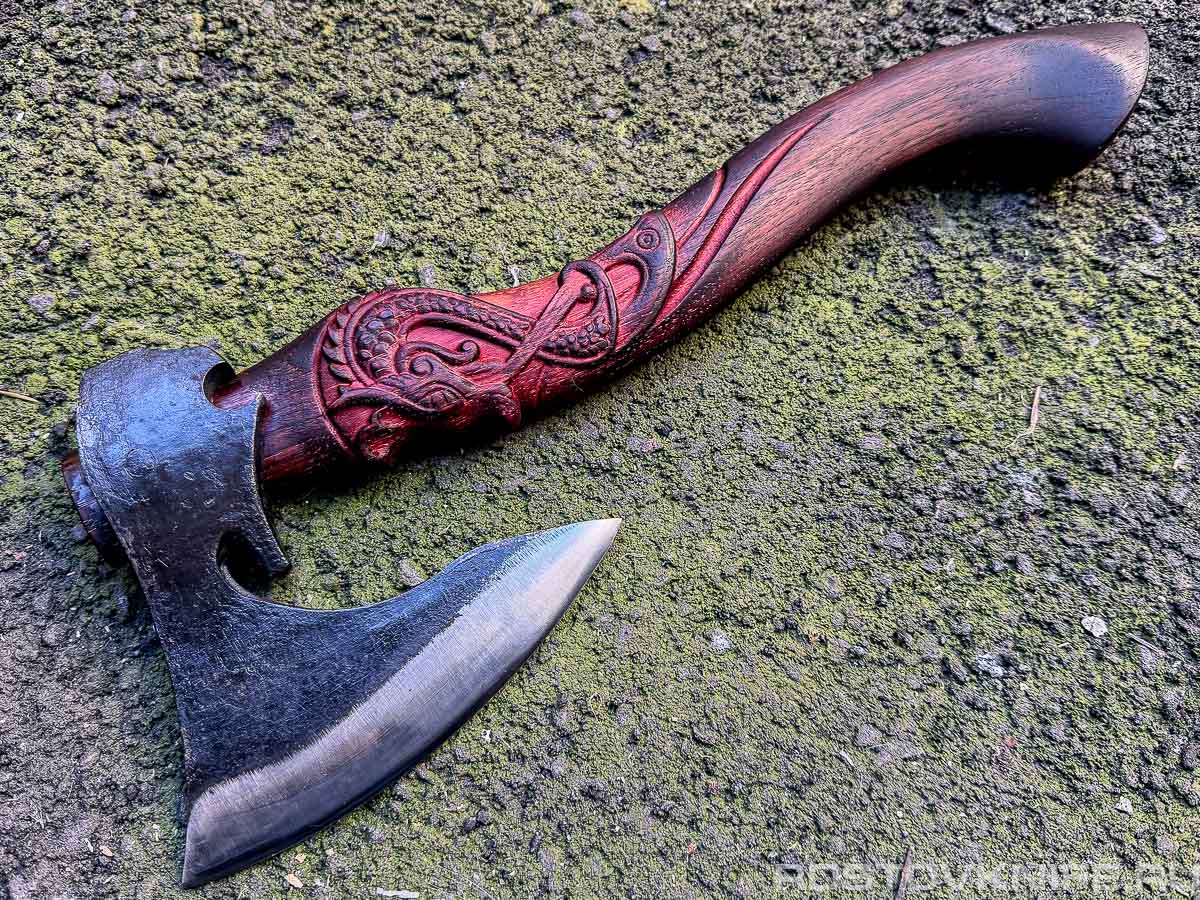 YZLB045-380 Топор Crescent Battle Ax Tomahawk carve dragon handle IRON BROTHER + Case