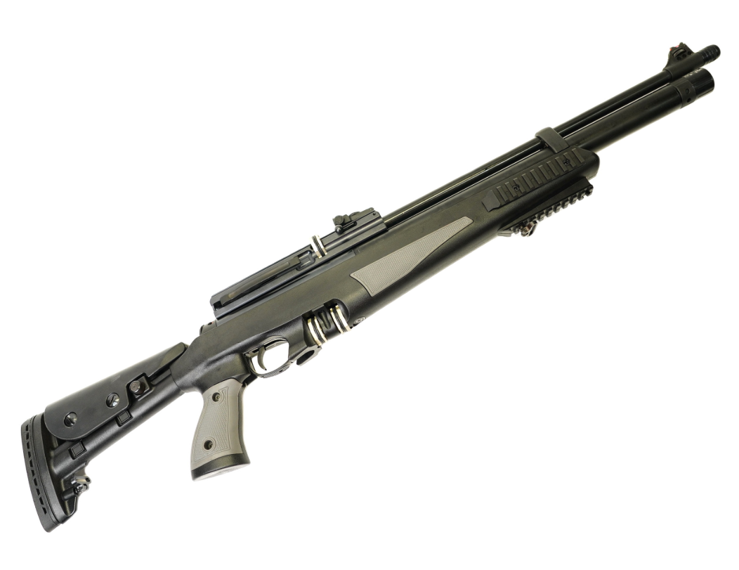 Пневматическая винтовка Hatsan AT44-10 TACT относится к винтовкам с предварительной накачкой (PCP). В корпусе винтовки находится специальный резервуар для воздуха. Сжатый под большим давлением воздух и служит источником выстрела. Для быстрой заправки резервуара поможет насос высокого давления со встроенным манометром, либо компрессор. Резервуар объемом 180 см3, максимальное давление - 200 бар. Магазин псп винтовки Hatsan AT44-10 TACT рассчитан на 9 пуль калибра 6.35 мм.